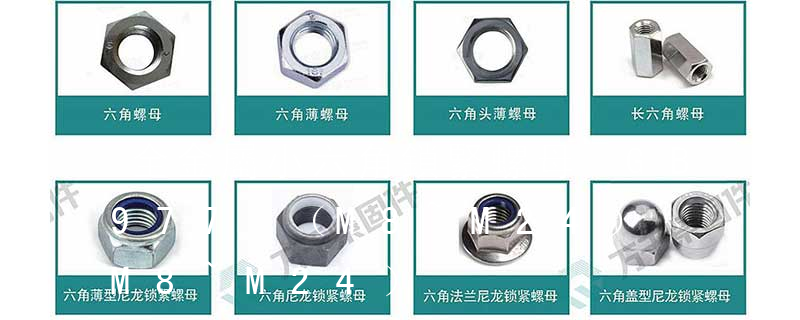 非金屬嵌件六角法蘭面鎖緊螺母 細牙 GB /T 6183.2-2000 1型全金屬六角鎖緊螺母 GB /T 6184-2000 2型全金屬六角鎖緊螺母 GB /T 6185.1-2000 2型全金屬六角鎖緊螺母 細牙 GB /T 6185.2-2000 2型全金屬六角 全金屬六角法蘭面鎖緊螺母GB/T 6187.1—2000。全金屬六角法蘭面鎖緊螺母細牙GB/T 6187.2—2000;1型六角開槽螺母細牙A和B級GB 9457—88;2型六角開槽螺母細牙A和B級GB 9458—88;六角開槽薄螺母細牙A和B級GB 9459