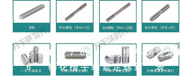 1. 內六角平端緊定螺釘 GB77-85(ISO4026-1977) 材料: 鋼 機械性能:33H 45H ; 不銹鋼 機械性能:A2-70 2. 內六角錐端緊定螺釘 GB78-85(ISO4027-1977) 材料:鋼 機械性能:33H 45H ; 不銹鋼 機械性能 ASME/ANSI B18.3 圓柱頭內六角螺釘 說明:ANSI是美國國家標準。ASME是美國機械工程師學會標準。ASME/ANSI 既是美國國家標準也是美國機械工程師學會標準